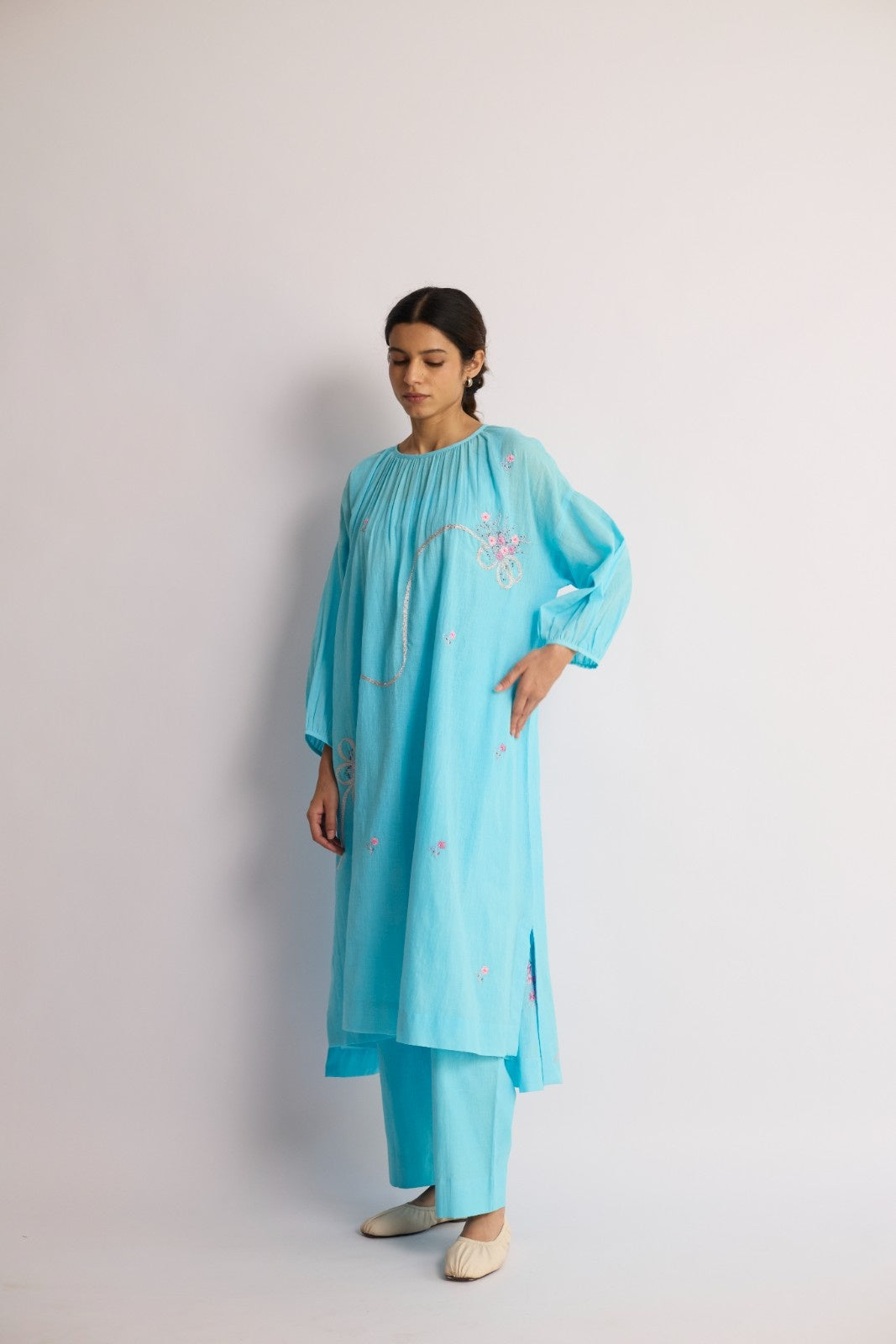 Our designs are meant to celebrate the small, everyday luxuries with distinctive pieces made in flowy cuts and natural fabrics, and decorated by thoughtful details. Each piece is designed to be seasonless and timeless, with an irreverence for boundaries of shape and age to offer globally relevant clothing.