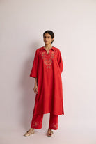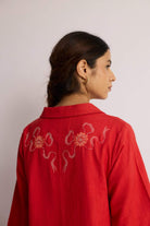 Crafted in handwoven Khadi fabric for a timeless and elegant look. The neckline & back are beautifully detailed with thread work, highlighted with beads for a delicate finish. The embroidery is enhanced with net appliqué work