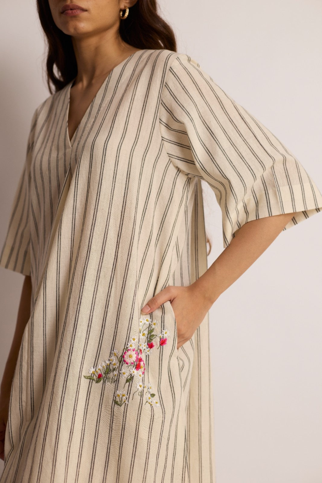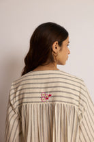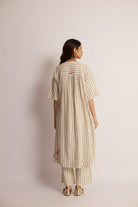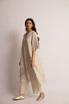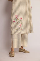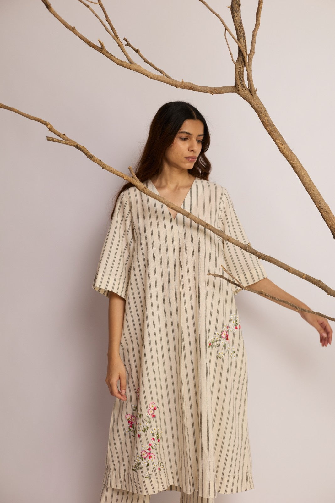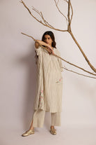 A Natural colored  Kurta set in handwoven fabric with stripes