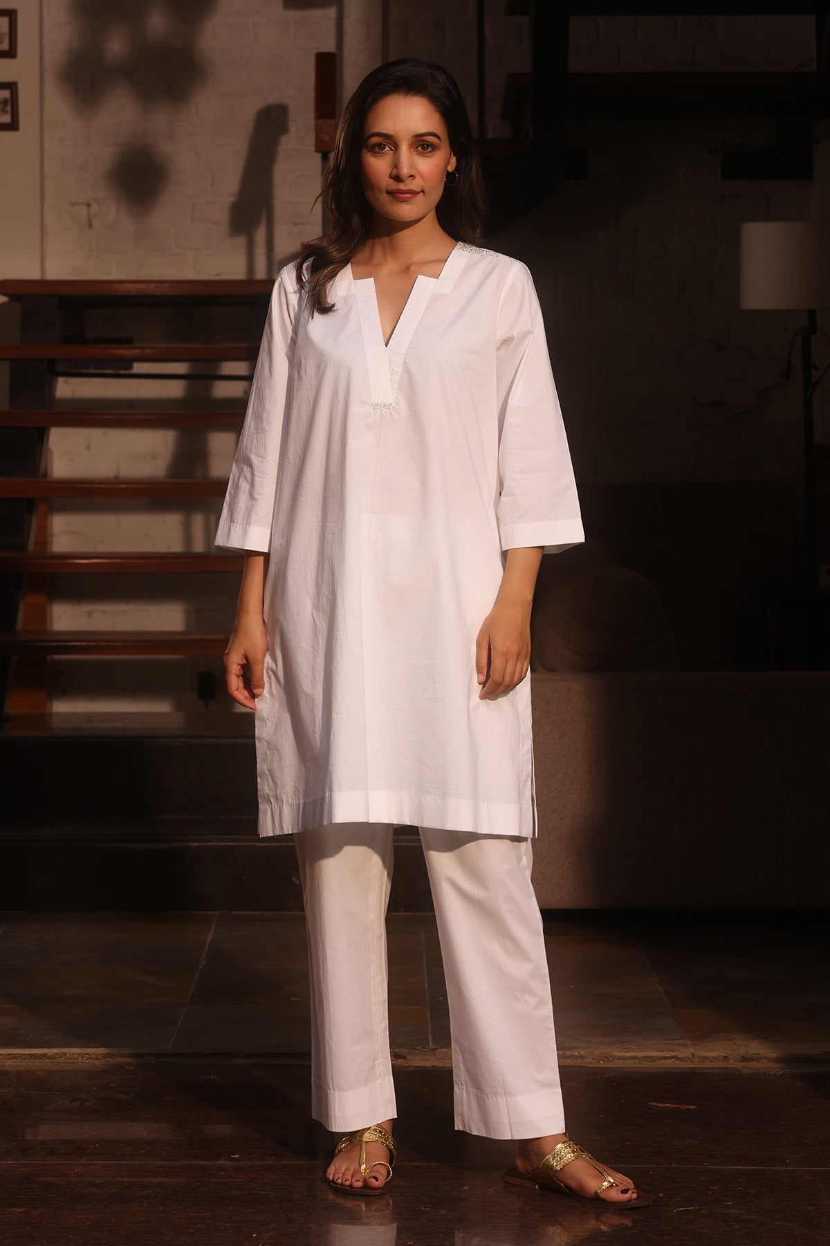 Top - White | Bottom - Camel colour