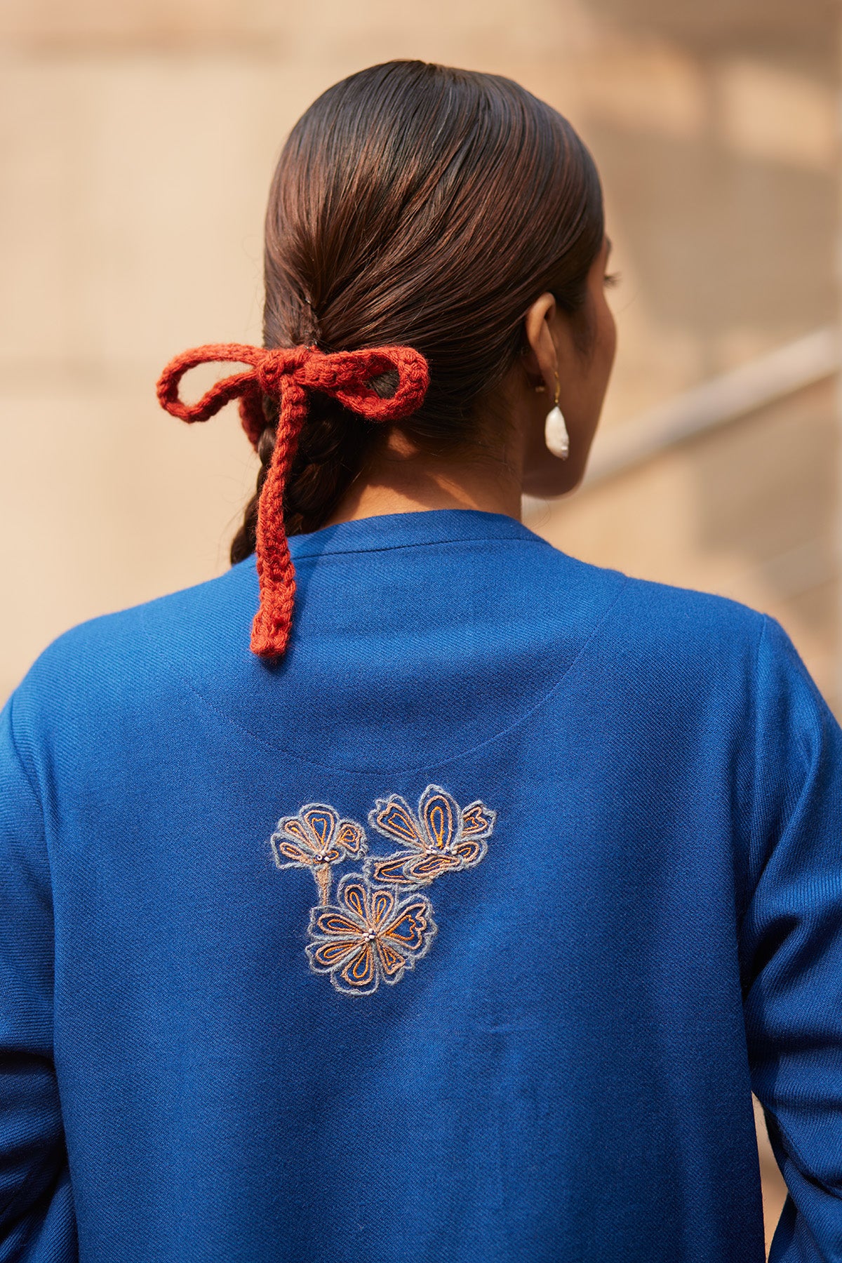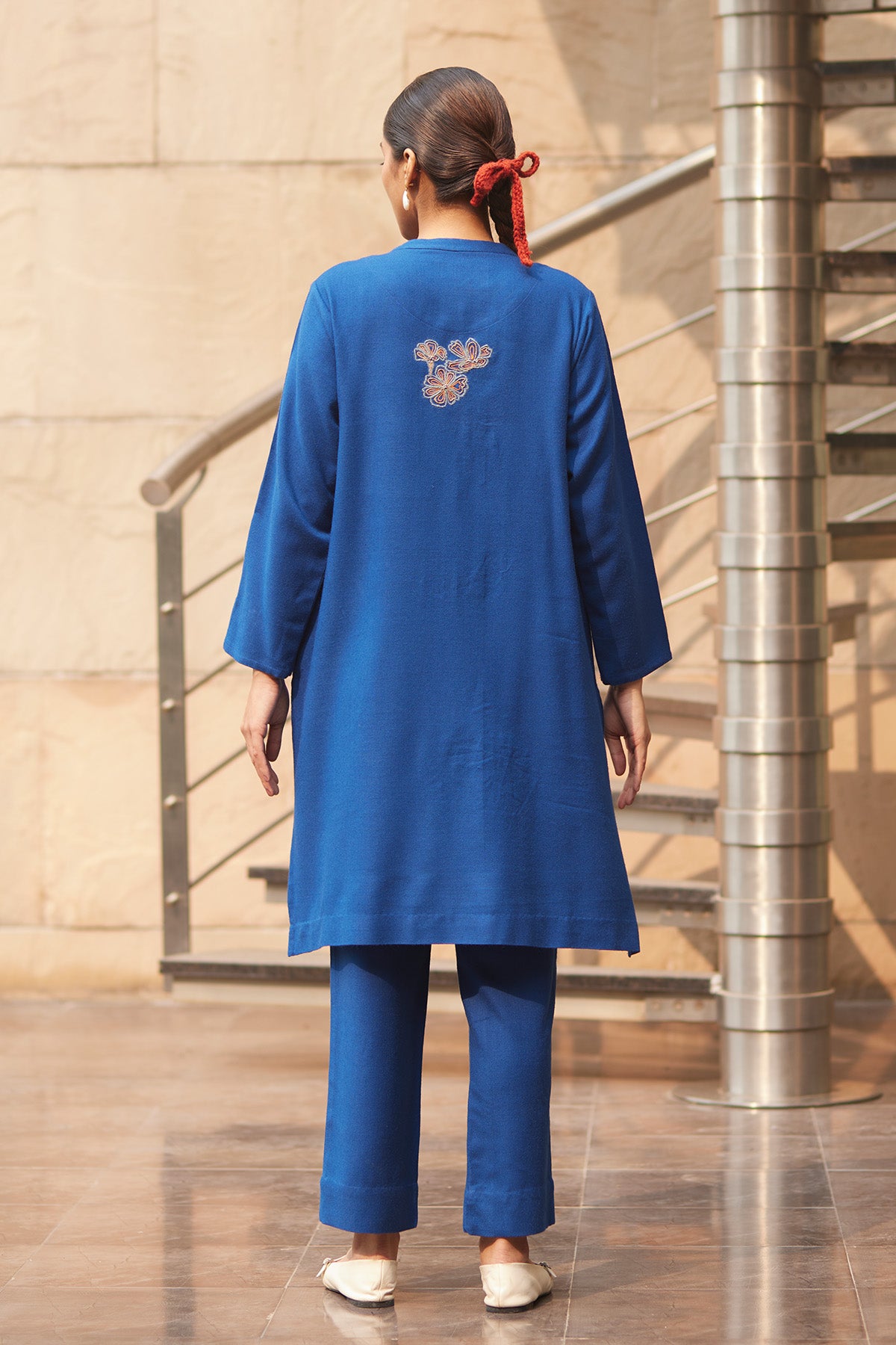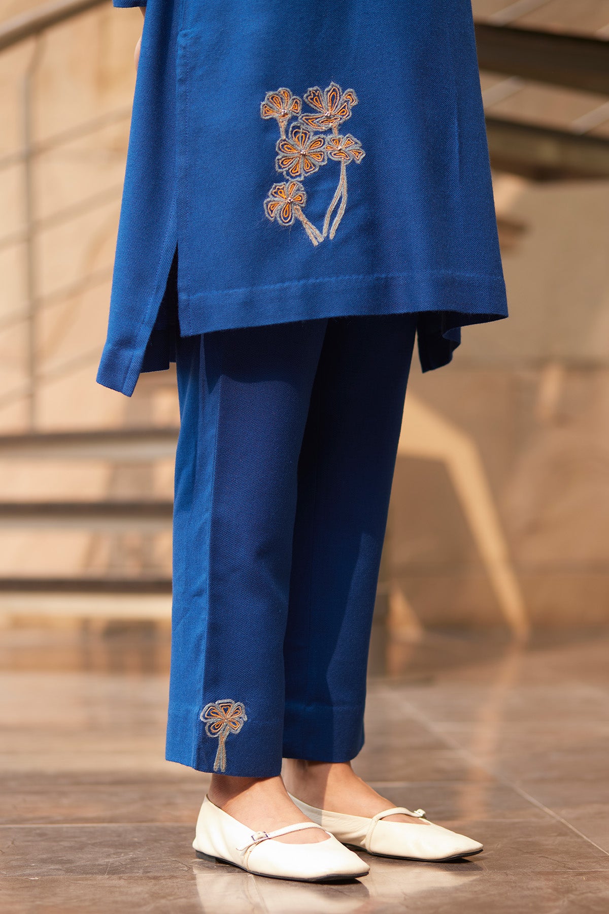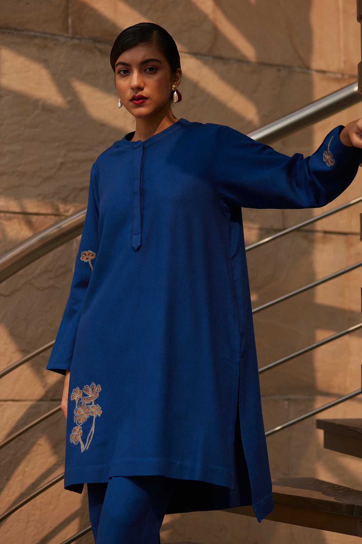 Embroidered buta using wool on the side hem of the kurta & sleeves